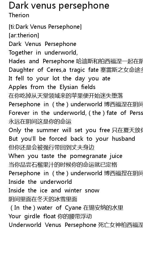 | [03:30.117] | Underworld Venus Persephone sǐ wáng nǚ shén bǎi xī fú niè |