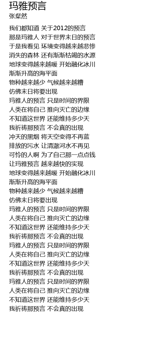 | [00:29.98] | wǒ men dōu zhī dào guān yú 2012 de yù yán |
