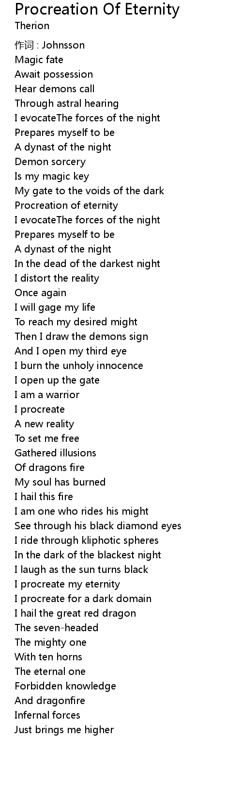 | Song | Procreation Of Eternity |