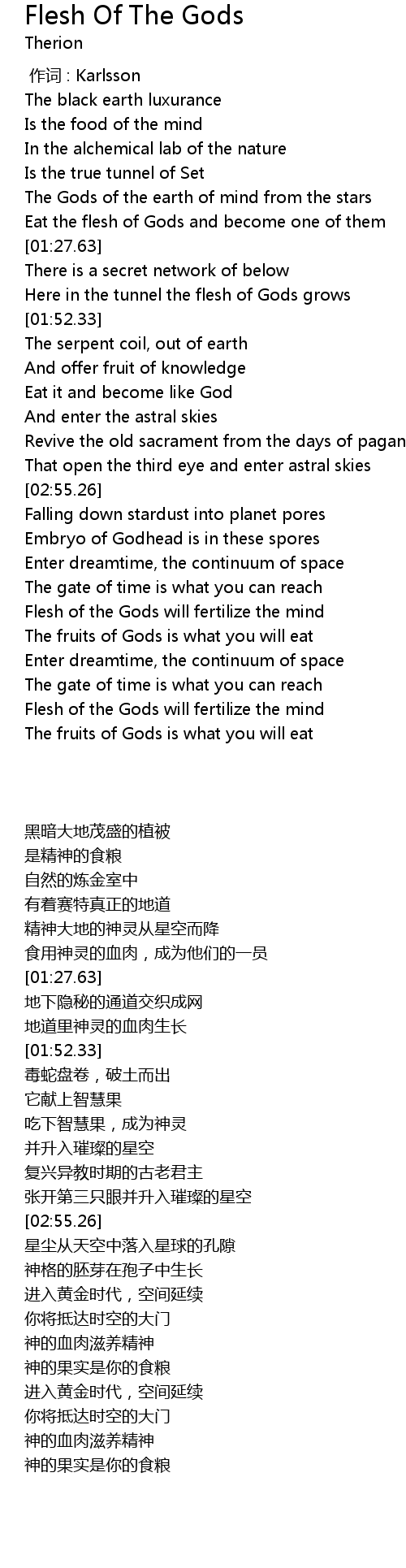 | [03:46.76] | Flesh of the Gods will fertilize the mind |
