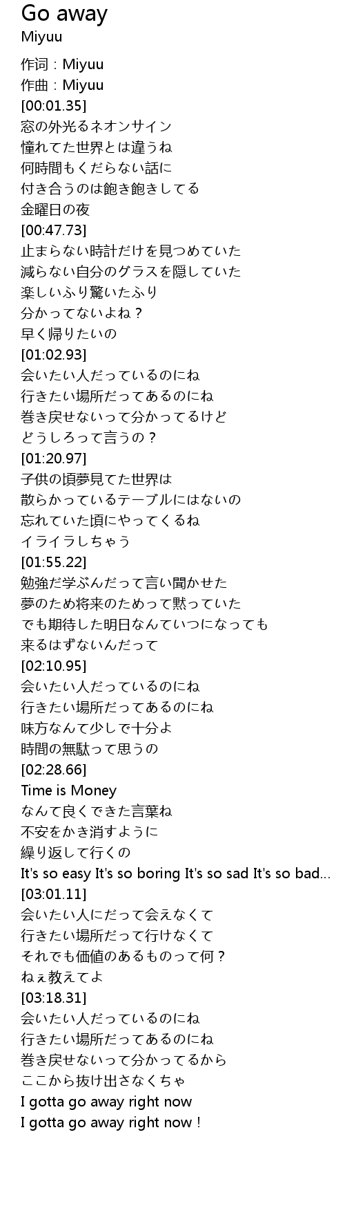 | [03:25.74] | 行きたい場所だってあるのにね |
