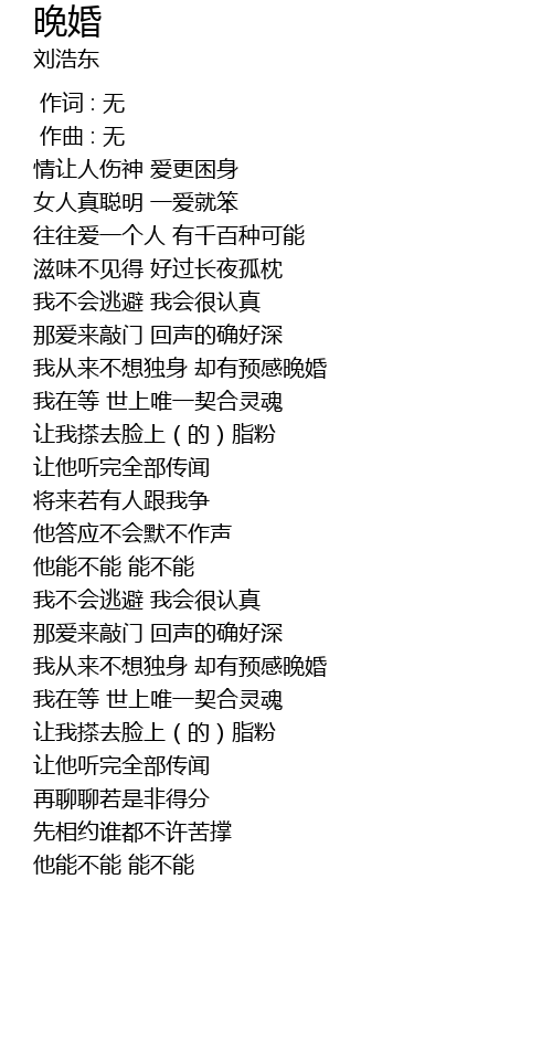 | [01:03.954] | 我从来不想独身 却有预感晚婚 |