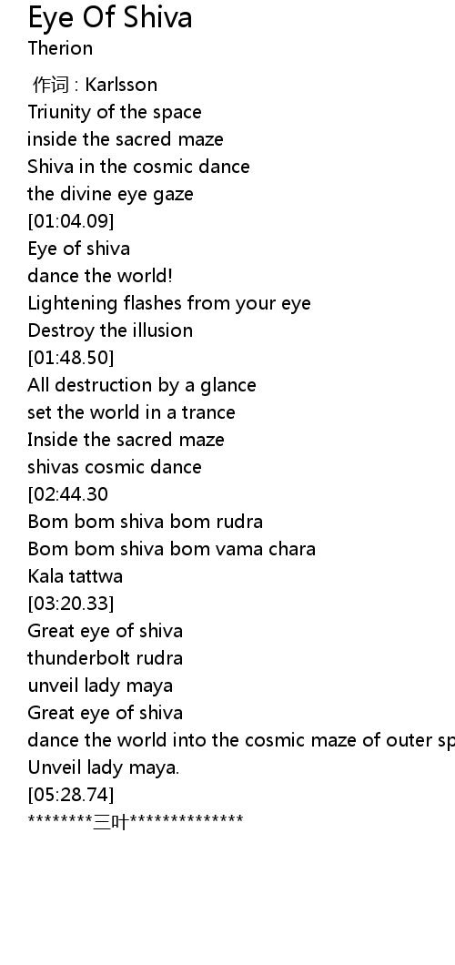 | [02:53.67][02:44.30] | Bom bom shiva bom shankara |