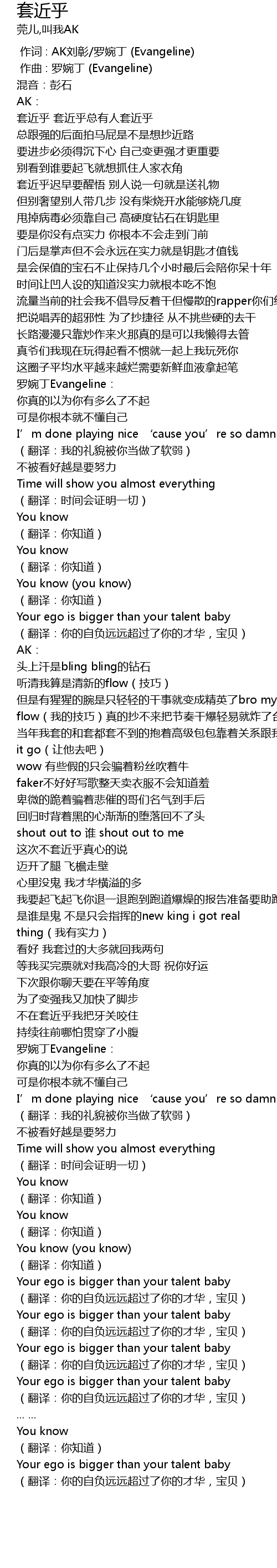 | [00:13.205] | tào jìn hū tào jìn hū zǒng yǒu rén tào jìn hū |