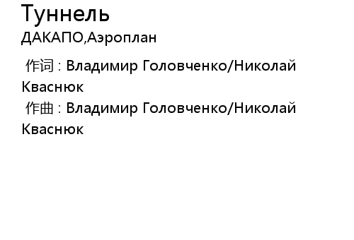 作词 : Владимир Головченко/Николай Кваснюк