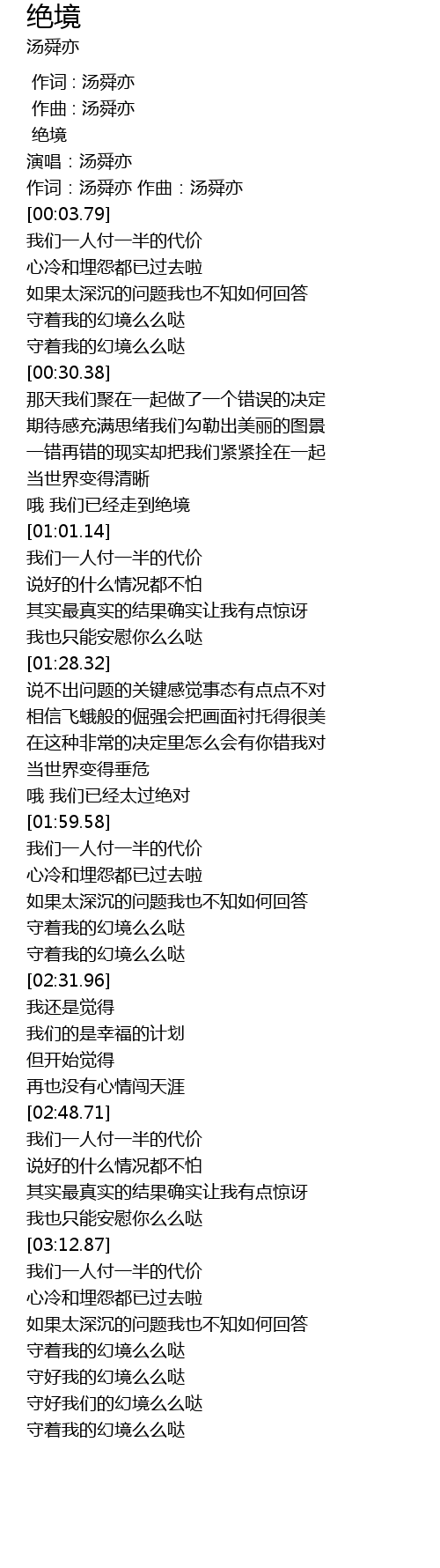 | [03:46.37] | 守好我的幻境么么哒 |