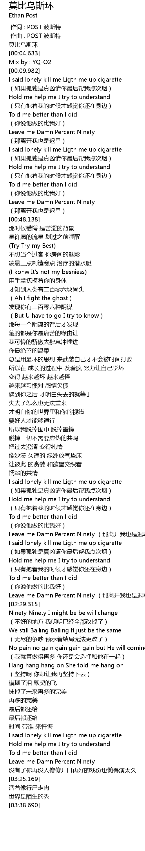 | [00:32.451] | I said lonely kill me Ligth me up cigarette |