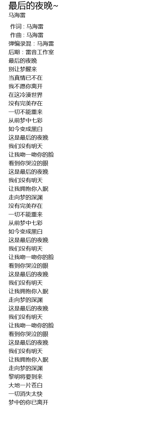 | [03:31.915] | zhe shi zui hou de ye wan |