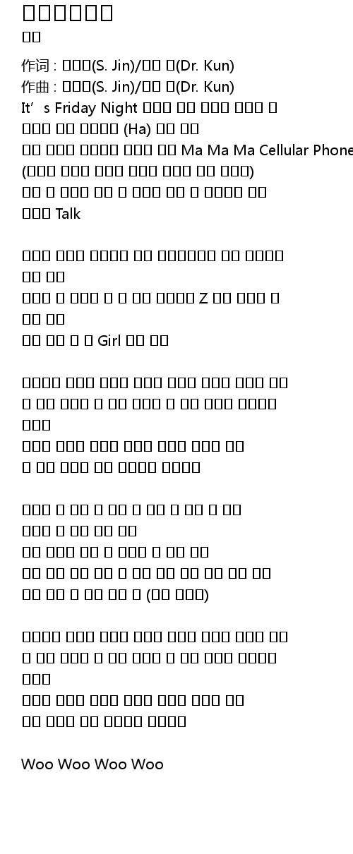 作词 : 에스진(S. Jin)/닥터 쿤(Dr. Kun) |
