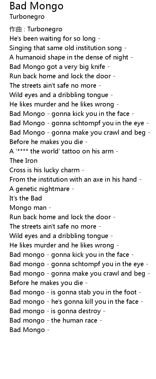 | Bad Mongo - gonna make you crawl and beg - | |