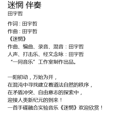 | 作曲、编曲、录音、混音:田宇哲 | |