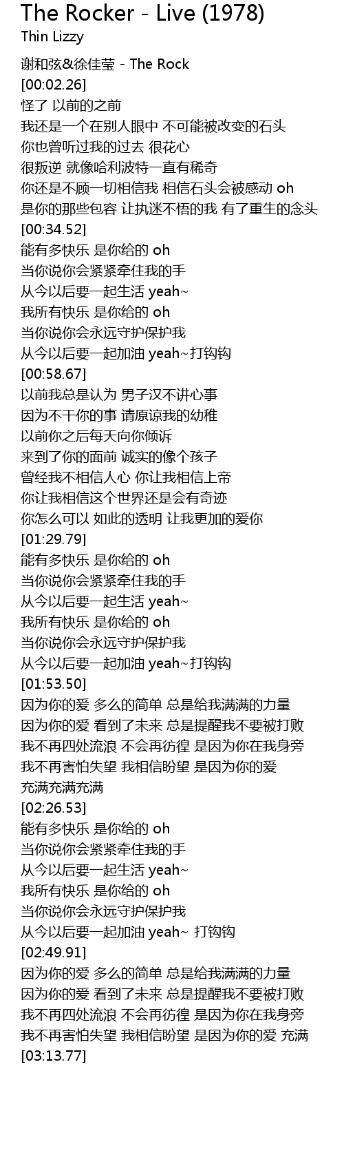 | [00:00.03] | 谢和弦&徐佳莹 - The Rock |