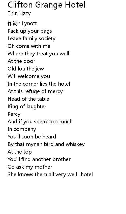 | Song | Clifton Grange Hotel |