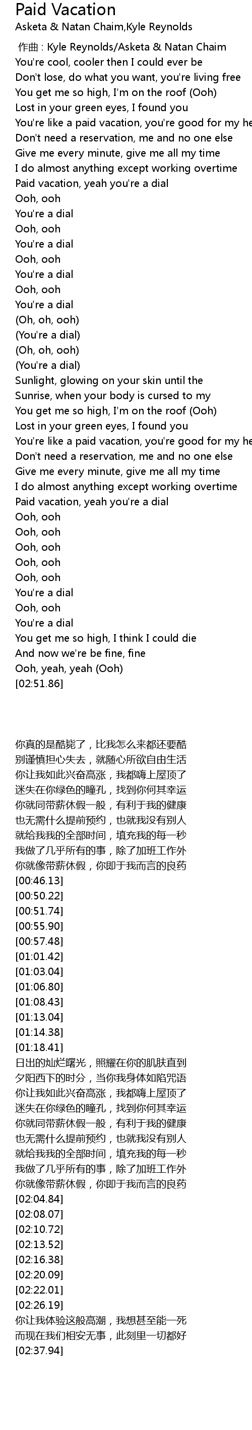 | [00:40.13] | Paid vacation, yeah you're a dial |