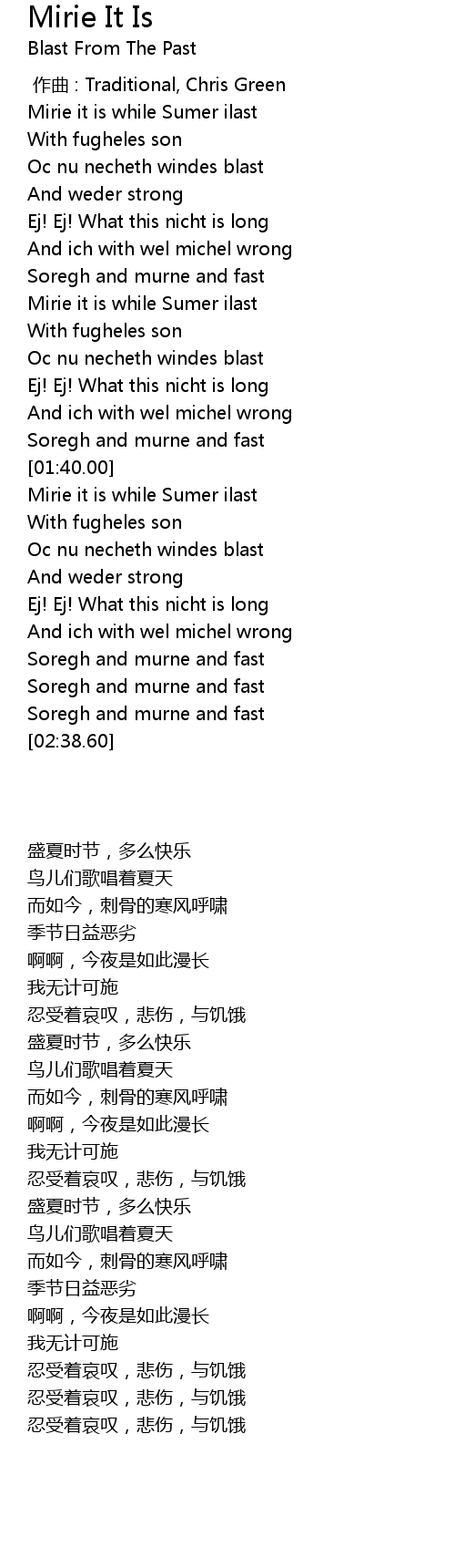 | [02:04.80] | Mirie it is while Sumer ilast |