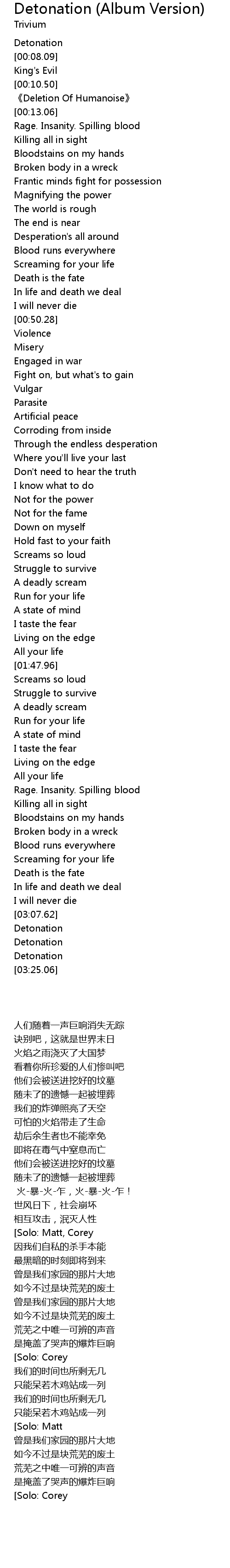 | [00:20.89] | Rage. Insanity. Spilling blood |