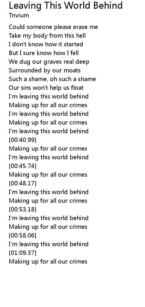 | [00:44.12] | I'm leaving this world behind |