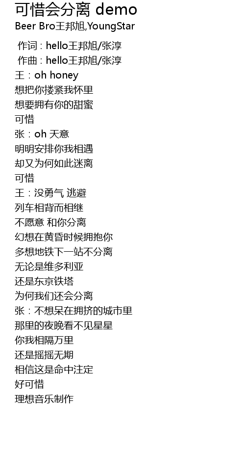 | [00:01.000] | 作曲 : hello王邦旭/张淳 |