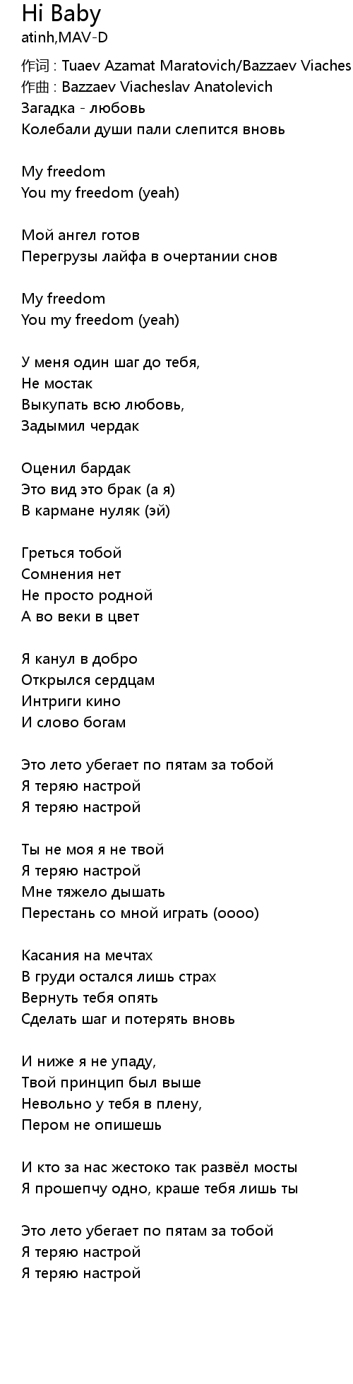 作词 : Tuaev Azamat Maratovich/Bazzaev Viacheslav Anatolevich |
