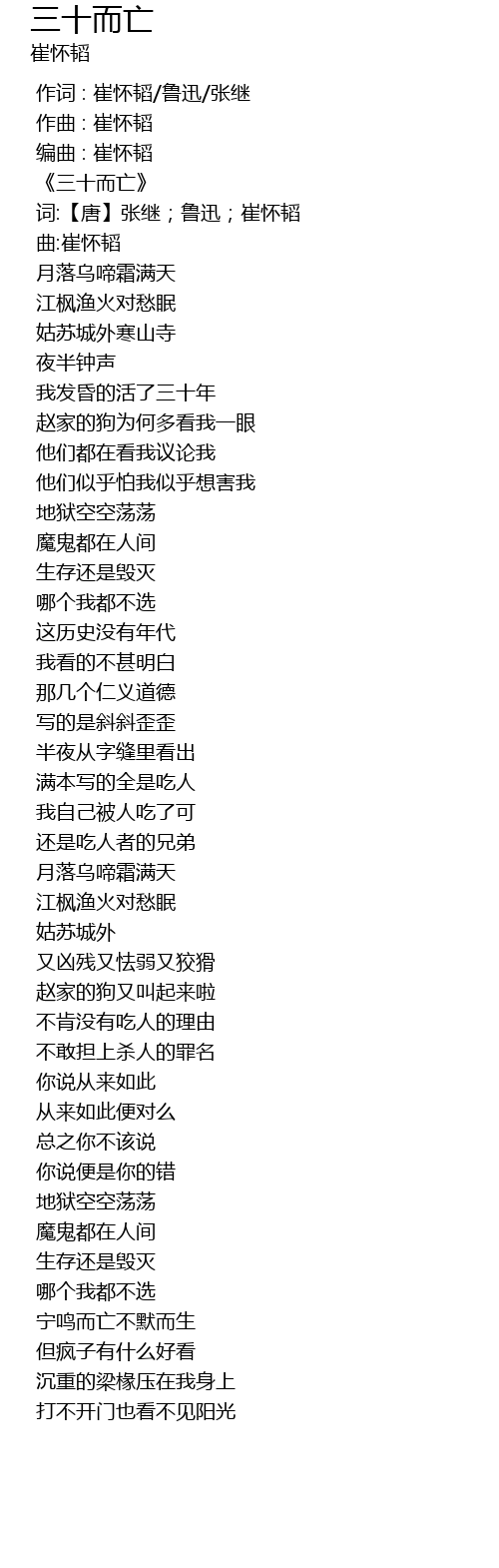 | [00:00.00] | 作词 : 崔怀韬/鲁迅/张继 |