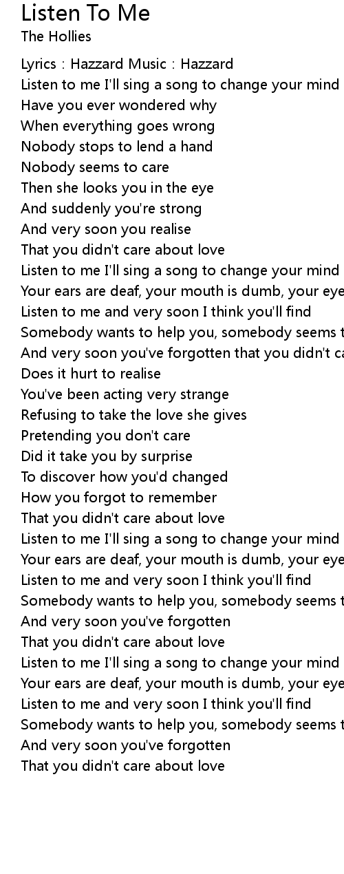 | Listen to me I'll sing a song to change your mind | |
