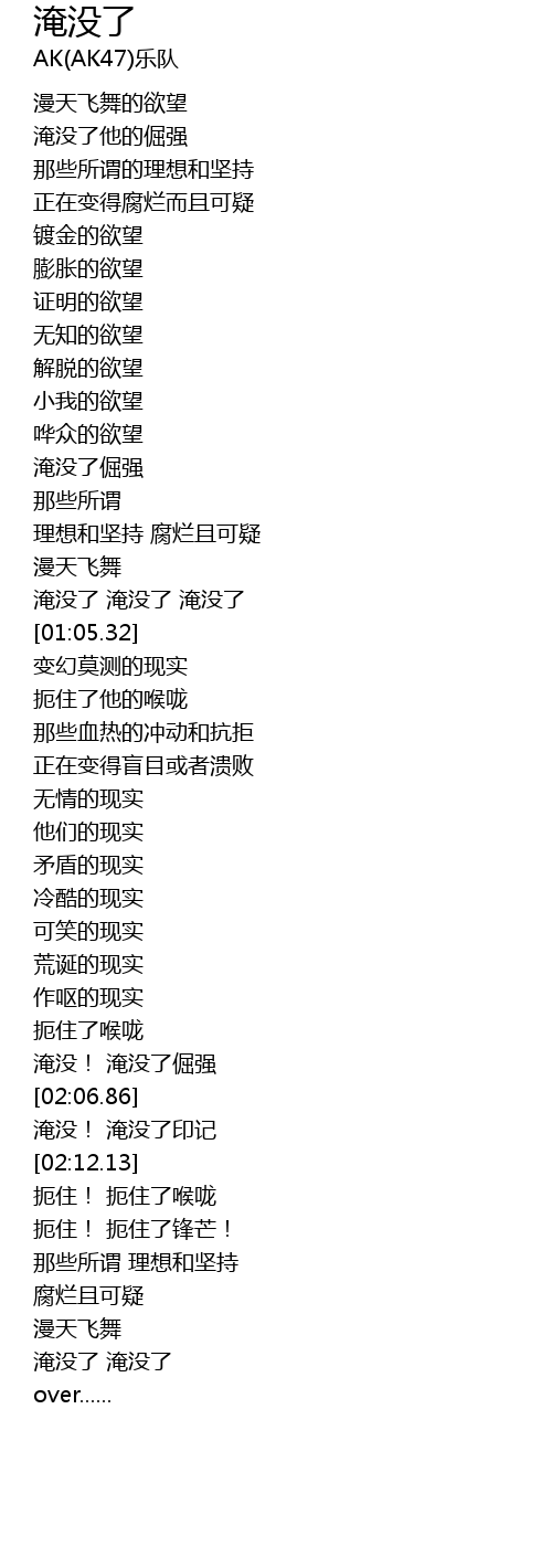 | [01:02.96] | 淹没了 淹没了 淹没了 |
