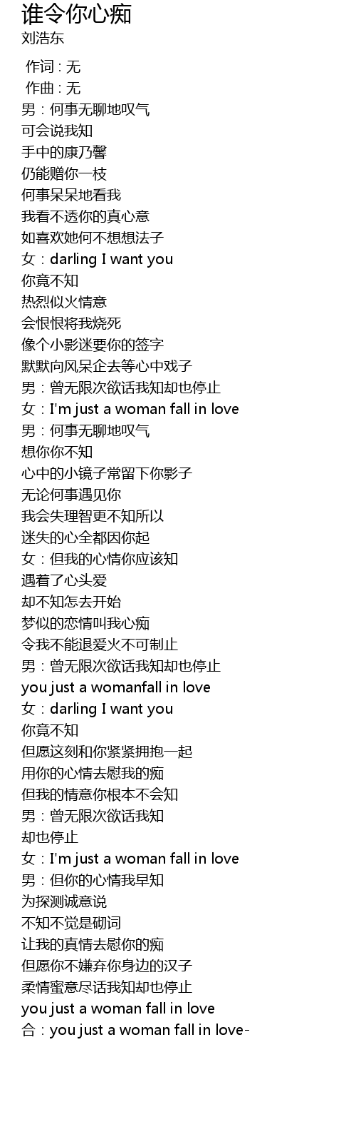 | [01:15.461] | nǚ: I' m just a woman fall in love |