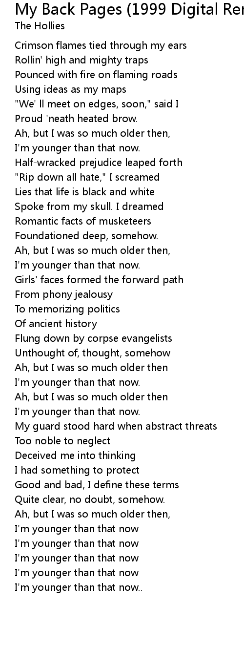 Ah, but I was so much older then |