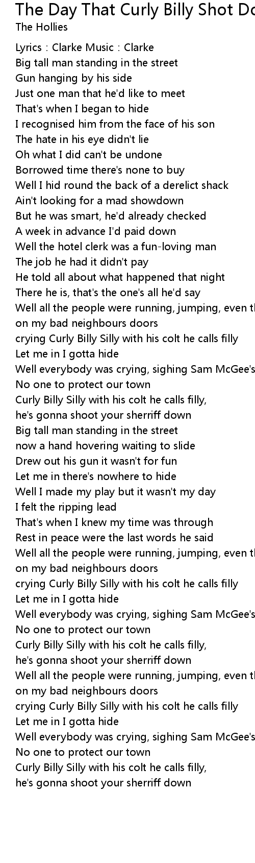 | Song | The Day That Curly Billy Shot Down Crazy Sam Mcgee |