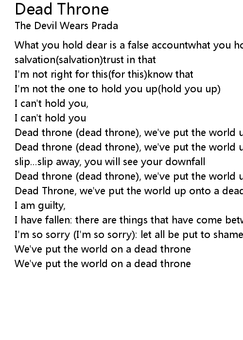 Dead throne (dead throne), we've put the world up onto a dead throneshe will slip...slip away, you will see your downfall |