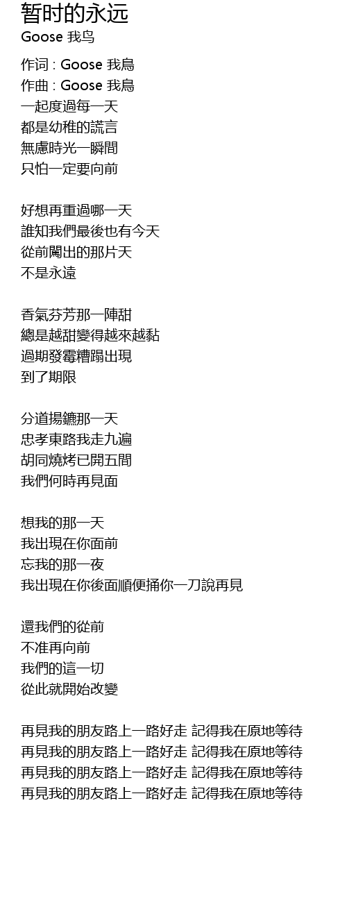 | 再見我的朋友路上一路好走 記得我在原地等待 |