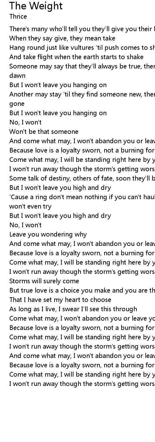 | Come what may, I won't abandon you or leave you behind | |