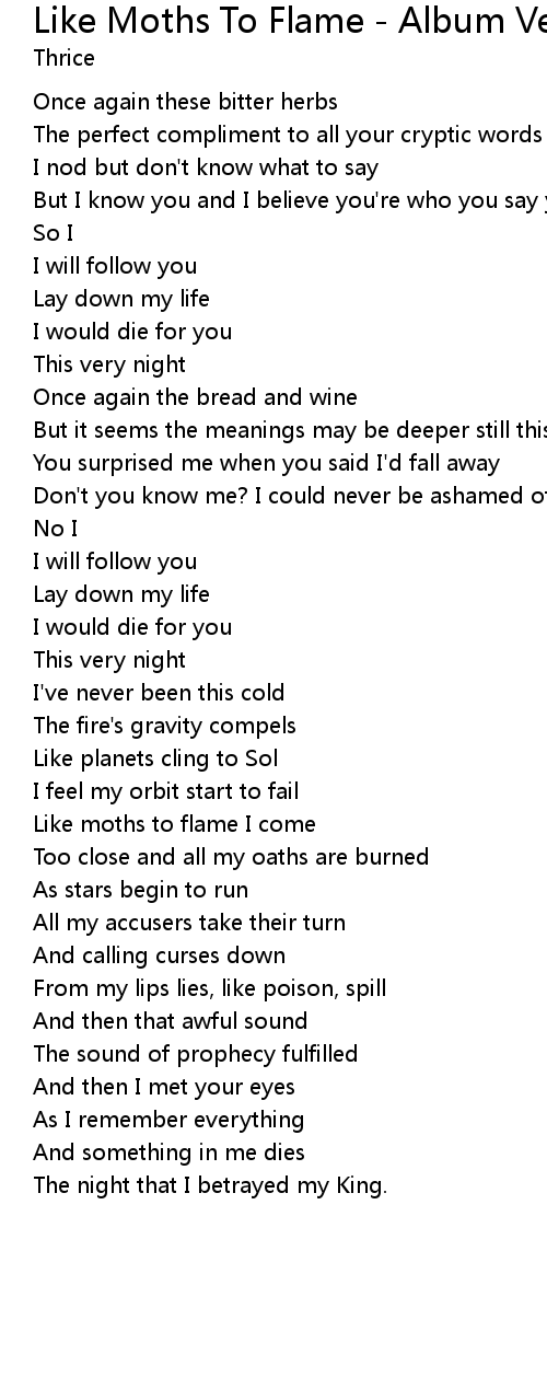 | Like moths to flame I come | |