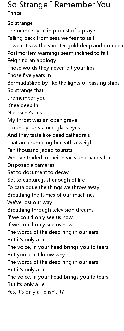 So Strange I Remember You Lyrics
