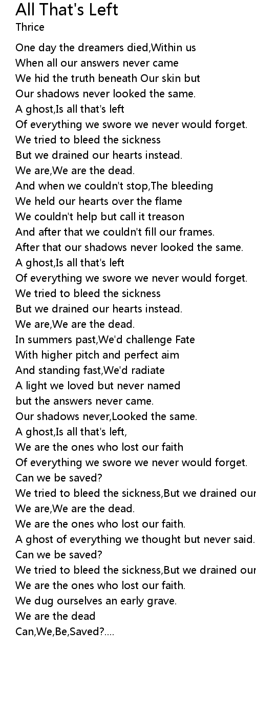 We tried to bleed the sickness,But we drained our hearts instead. |