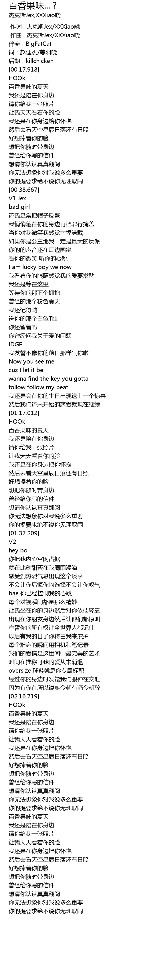 | [00:00.000] | 作词 : 杰克斯Jex/XXXiao晓 |