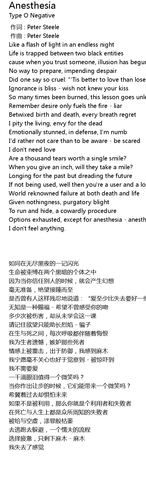 | [00:01.000] | zuò qǔ : Peter Steele |