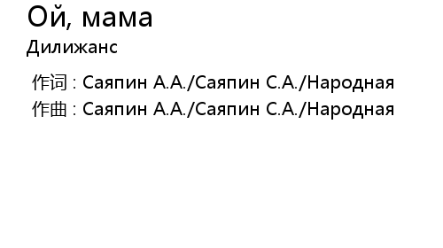 | [00:00.00-1] | 作曲 : Саяпин А.А./Саяпин С.А./Народная |