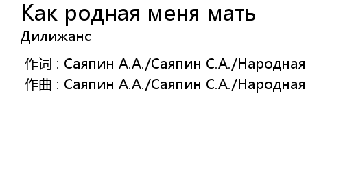 | [00:00.00-1] | 作曲 : Саяпин А.А./Саяпин С.А./Народная |