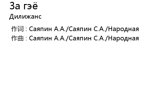 | [00:00.00-1] | 作曲 : Саяпин А.А./Саяпин С.А./Народная |