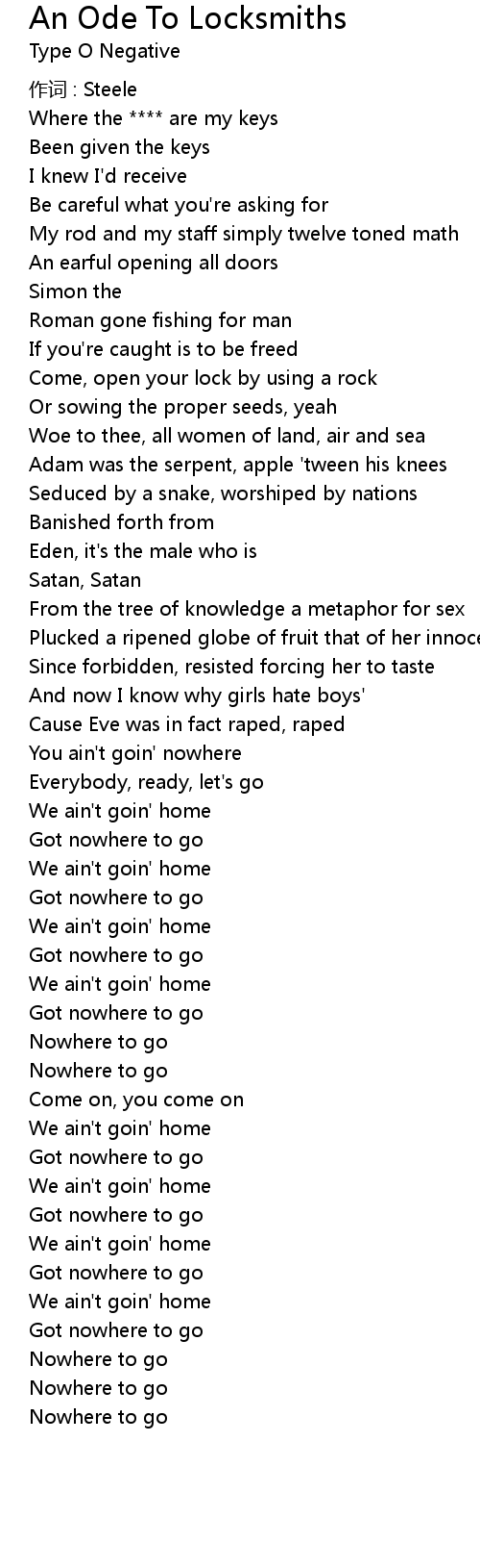 | Song | An Ode To Locksmiths |
