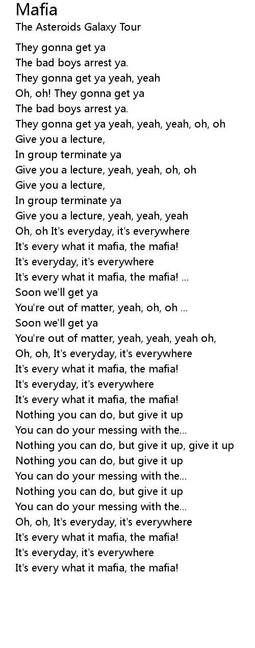 They gonna get ya yeah, yeah, yeah, oh, oh