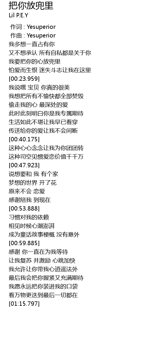 | [00:01.000] | zuò qǔ : Yesuperior |