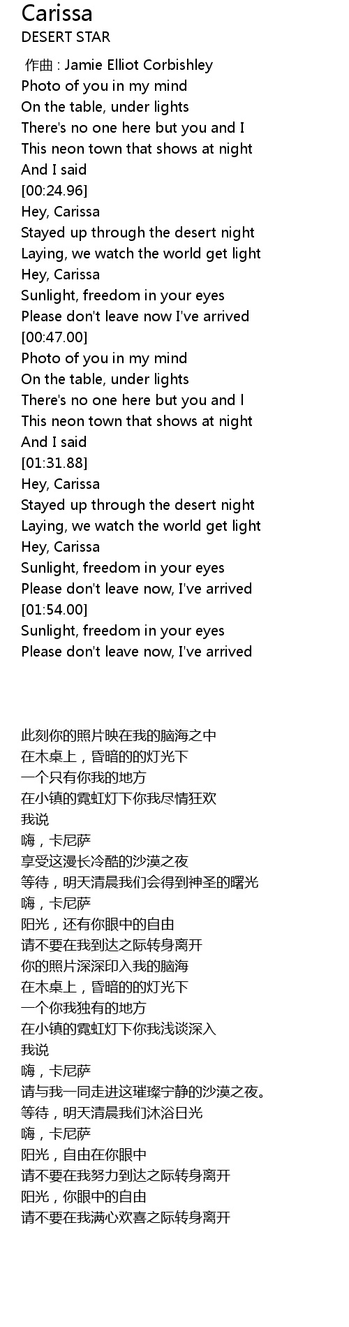 | [00:44.97] | Please don' t leave now I' ve arrived |