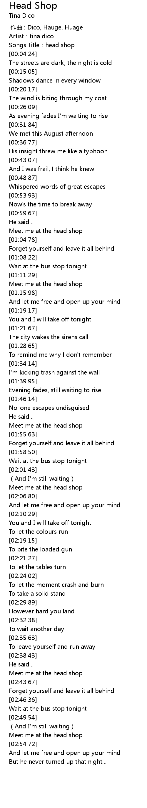 | [00:02.44] | Songs Title: head shop |