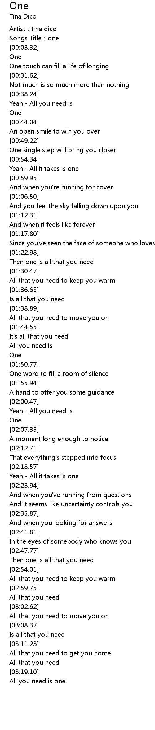 | [02:50.95] | Then one is all that you need |