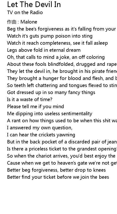 | Beg the bee' s forgiveness as it' s falling from your sleeve | |