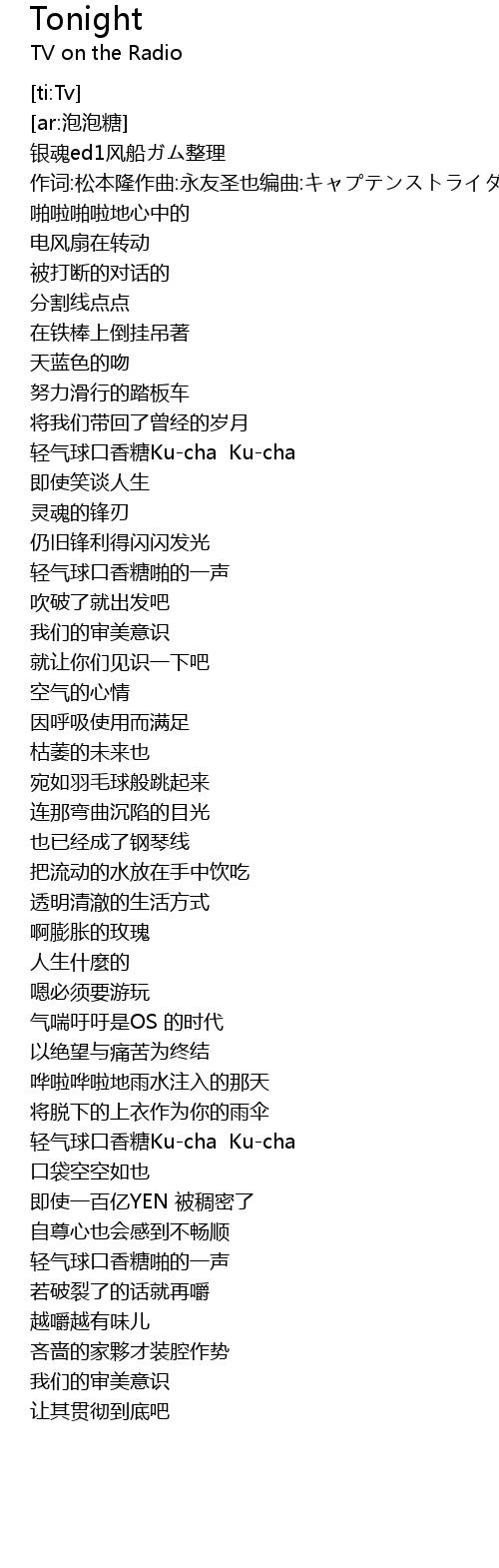 | [01:01.802] | 轻气球口香糖Ku-cha Ku-cha |
