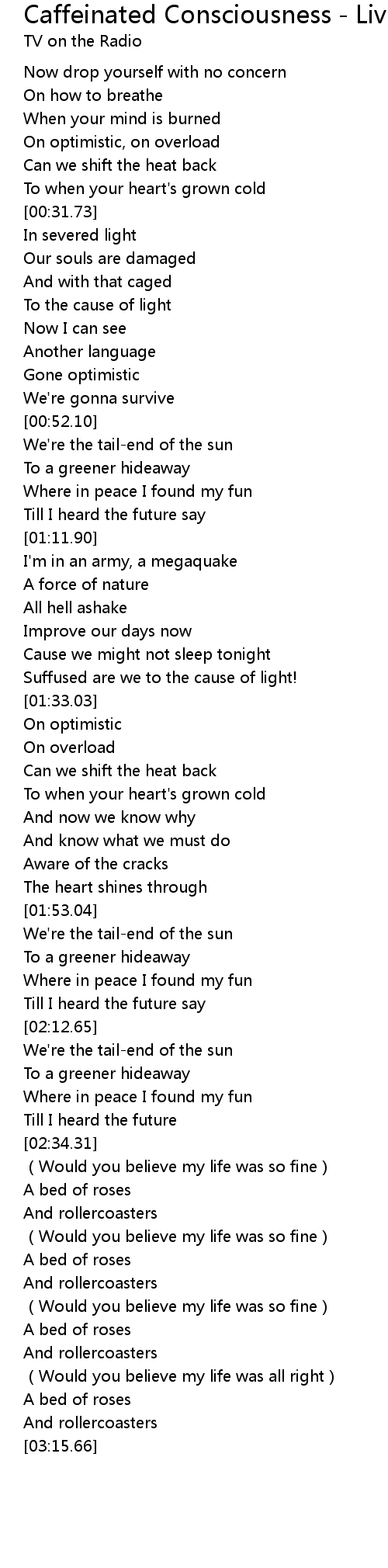 | Song | Caffeinated Consciousness - Live At World Cafe |