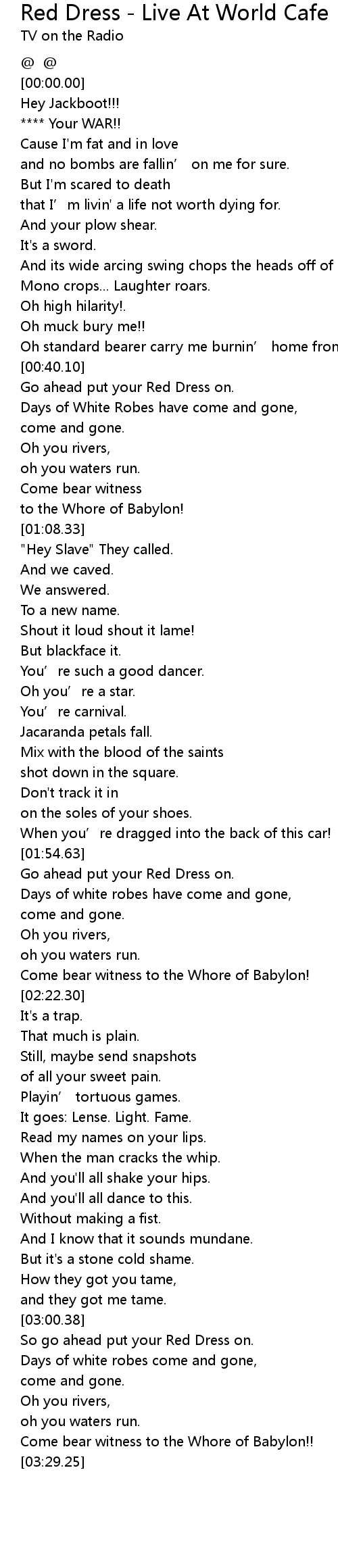| [00:41.09] | Go ahead put your Red Dress on. |